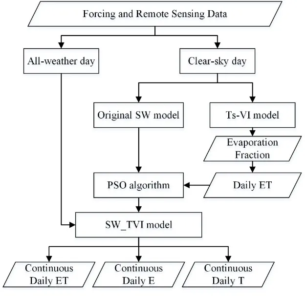 文献引用:Cui, Y.,Jia, L., & Fan, W. (2021). Estimation of actual evapotranspiration and itscomponents in an irrigated area by integrating the Shuttleworth-Wallace andsurface temperature-vegetation index schemes using the particle swarmoptimization algorithm. Agricultural And Forest Meteorology, 307, 108488