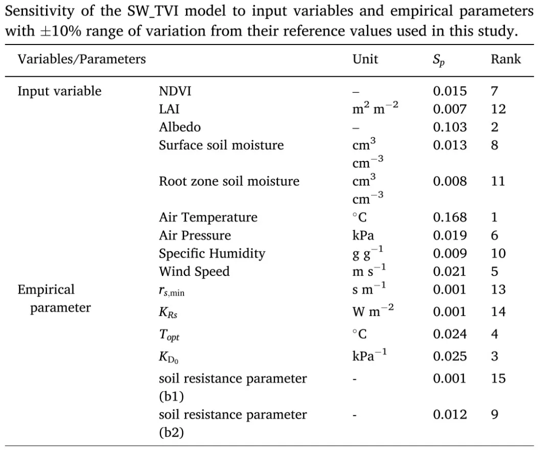 表2 SW_TVI模型和SW模型经验参数敏感性分析