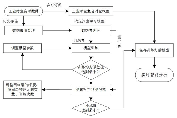 工业地理信息系统智能分析基于工业自动化、智能化和在线监测以及日常生产获取的动态和历史数据,在时空复合对象模型体系下,采用时空智能分析等手段,针对不同数据特点及应用需求,建立工业智能分析能力框架,为工业对象的交互操作行为提供智能化模型支持。一方面,类似传统地理信息系统空间分析应用,提供对不同时相、不同类型和不同区域时空信息的时间、属性和空间等多维度综合查询和分析,提供时空数据聚类、时空叠加分析、时空序列分析和预测分析等能力;另一方面,针对工业地理信息系统传感类实时数据丰富的特点,建立基于深度学习技术框架的各类预测和仿真模型等,包括基于统计学与模糊数学的非确定性数学算法、基于动力学规律的确定性算法、基于大数据的深度学习训练算法等。随着新一代信息技术的飞速发展,基于大数据的深度学习技术已得到越来越多的研究和应用,工业地理信息系统需建立满足深度学习训练和分析的机器学习支撑框架,如图8所示,包括时序数据存储及去噪、数据集划分、模型训练、模型验证及调优、模型运行等。其中深度学习模型根据不同的工业对象数据特点(刘博,2021),如时空序列类数据预测分析的循环神经网络(recurrent neural network, RNN)、长短期记忆网络(long short-term memory, LSTM)、门循环神经网络(gated recurrent unit, GRU),空间或轨迹、栅格类数据预测分析的卷积神经网络(convolutional neural network, CNN)、图卷积网络(graph convolutional network,GCN)等。